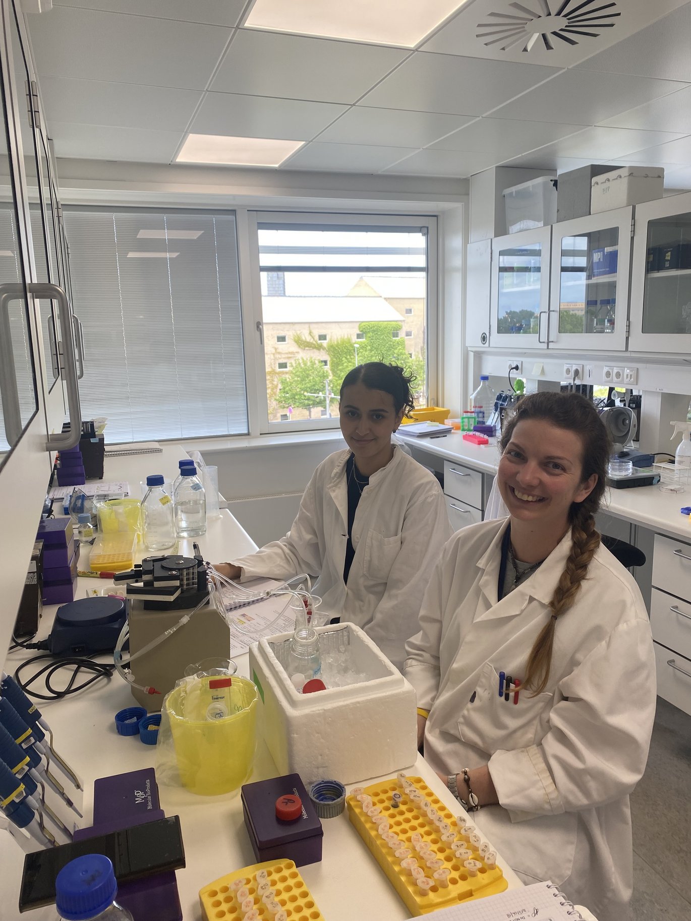 Recently, Assia Khalild, visiting from our satellite group at Université libre de Bruxelles (ULB), joined Lynette Nel in the Aarhus lab to carry out the crucial task of purifying membrane proteins. This work is an essential first step before samples are transferred to Brussels for advanced hydrogen–deuterium exchange (HDX) mass spectrometry analysis, a powerful technique that reveals the dynamic behavior of proteins at the molecular level.
