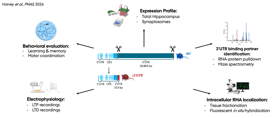 Forskerne udviklede en musemodel, hvor 3’UTR-delen af Grin2b var fjernet, mens selve proteinkoden var bevaret. Resultatet var overraskende: mængden af mRNA forblev uændret, men niveauet af det tilhørende protein, GluN2B, blev halveret.
