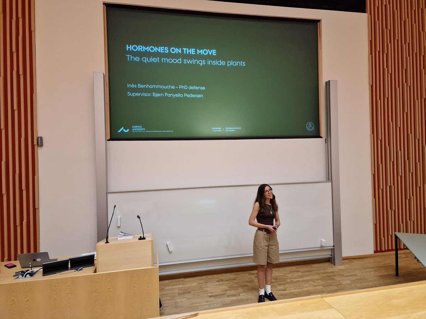 Inès completed her PhD thesis, titled “Hormones on the move: The quiet mood swings inside plants”, under the supervision of the Plant-PATH center's leader, Bjørn Panyella Pedersen. A special thank you to Henriette Elisabeth Autzen from the University of Copenhagen and Ekkehard Neuhaus from the University of Technology, Kaiserslauten, who travelled to Aarhus and helped create an informative discussion as the opponents to Inès' defence.