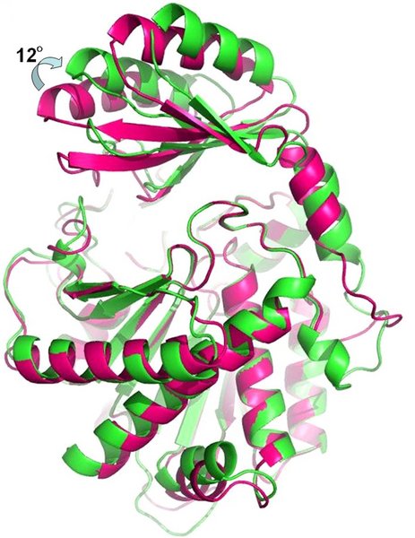 A superposition of the crystal structures of bovine TAFI (green) and porcine carboxypeptidase B (purple). Read more.